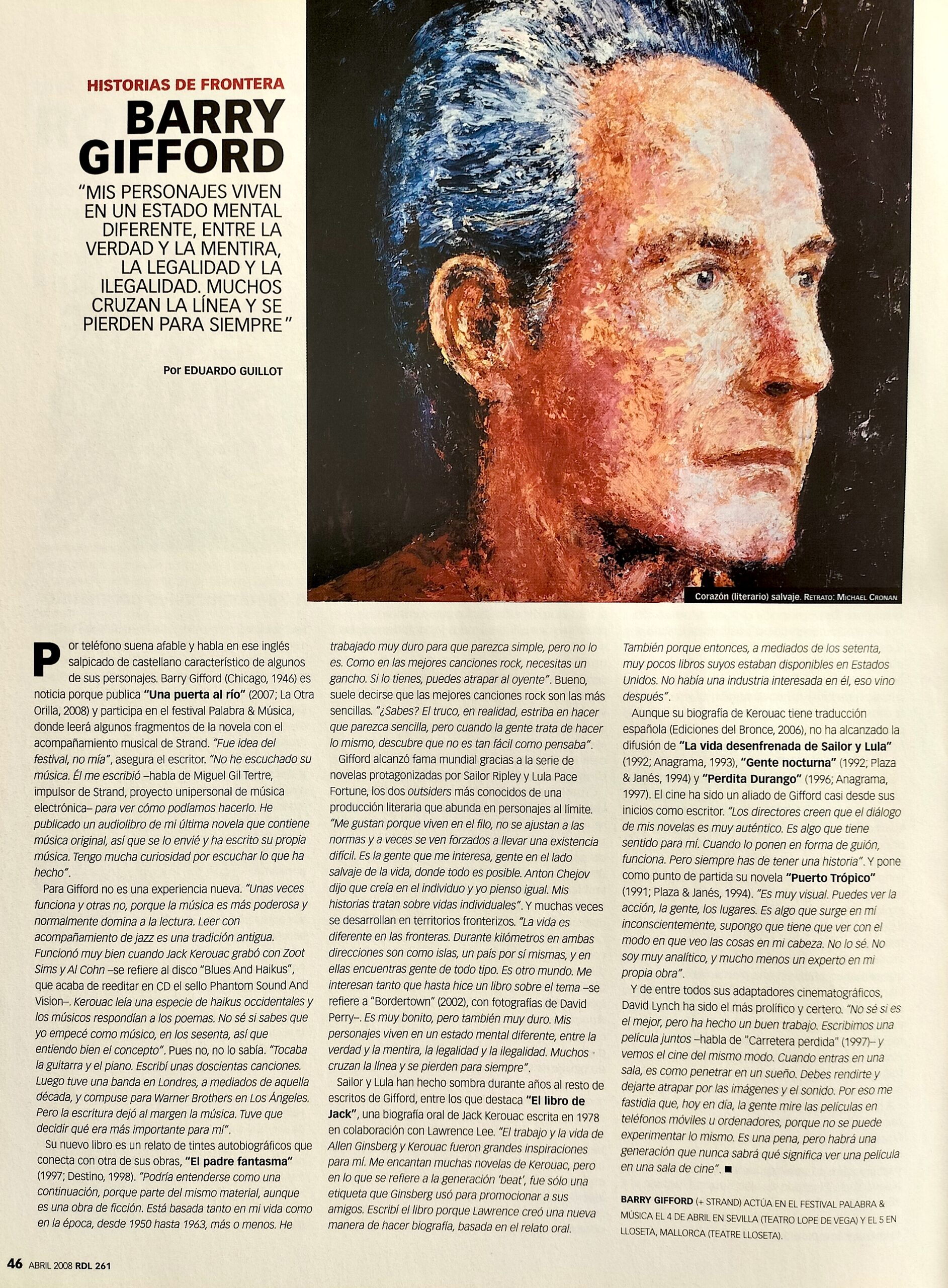 Una puerta al río apareció en 2008, y después de leerlo me puse en contacto con la editorial para sondear la posibilidad de entrevistarle. La respuesta fue positiva y así es como hablé con Gifford por primera vez, vía telefónica, para un artículo que aparecería en el número de abril de Rockdelux. No podía imaginar que aquella conversación sería el principio de una relación que muy pronto se haría más estrecha.