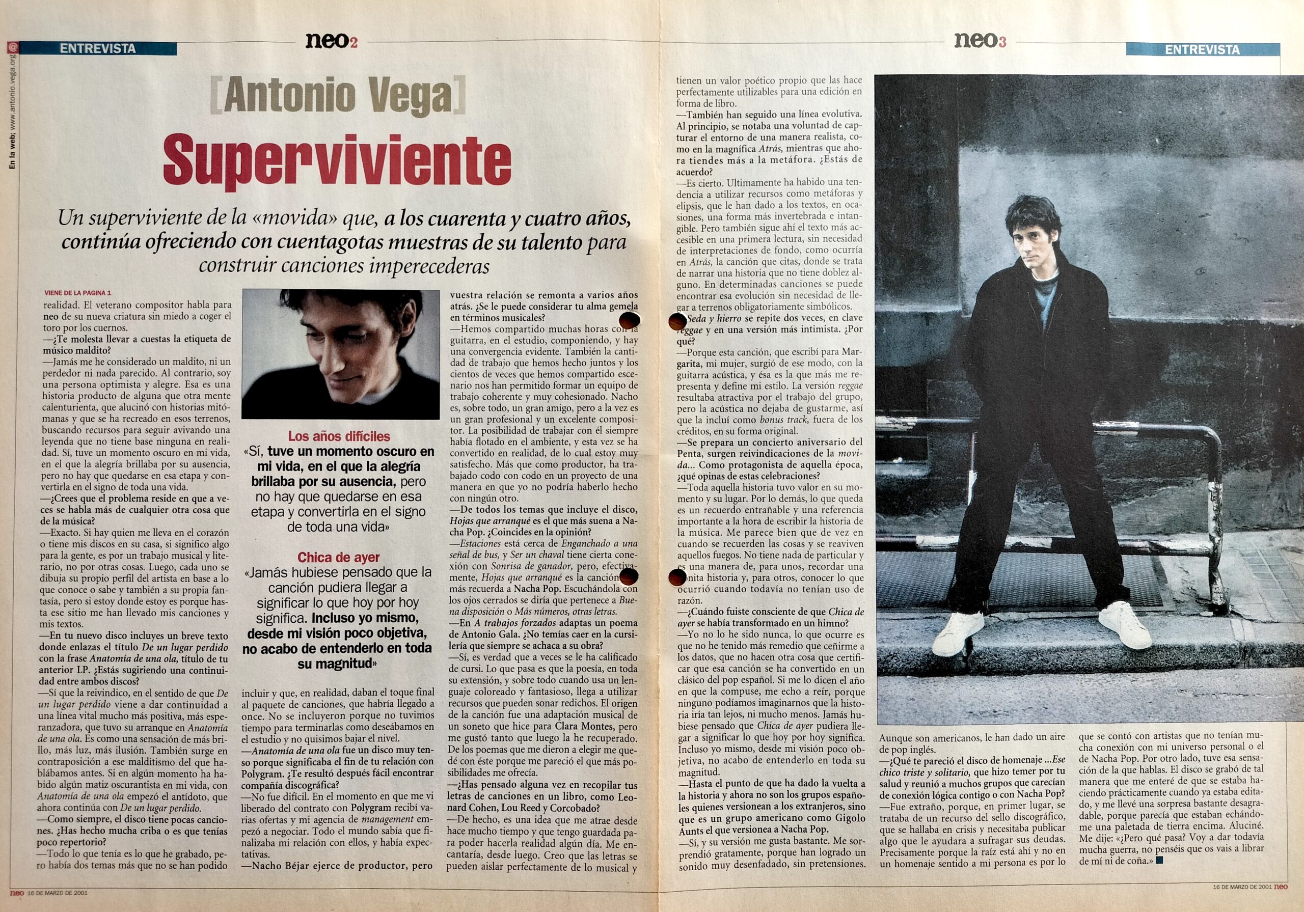 Esta vez la entrevista sí se hizo según los cánones. Es decir, que fue el sello discográfico el que pactó un encuentro con el artista en un hotel de Valencia y en una fecha concreta. Y allí nos citamos para mantener una charla que aparecería en marzo en Neo, el suplemento del diario Levante.