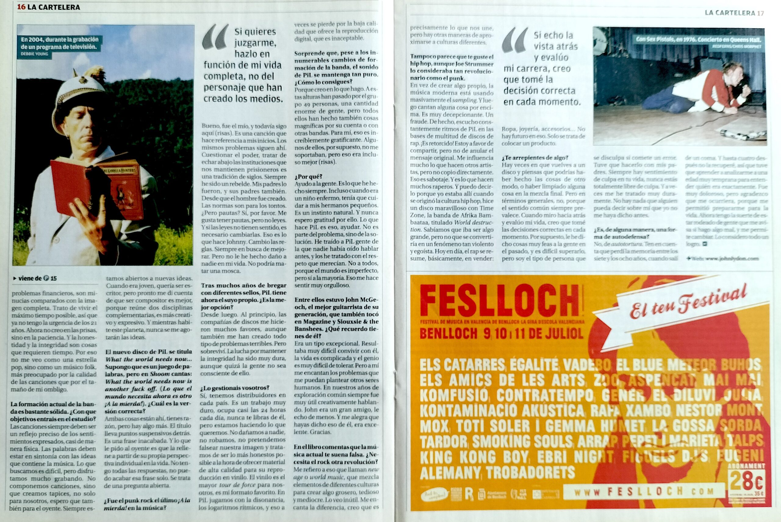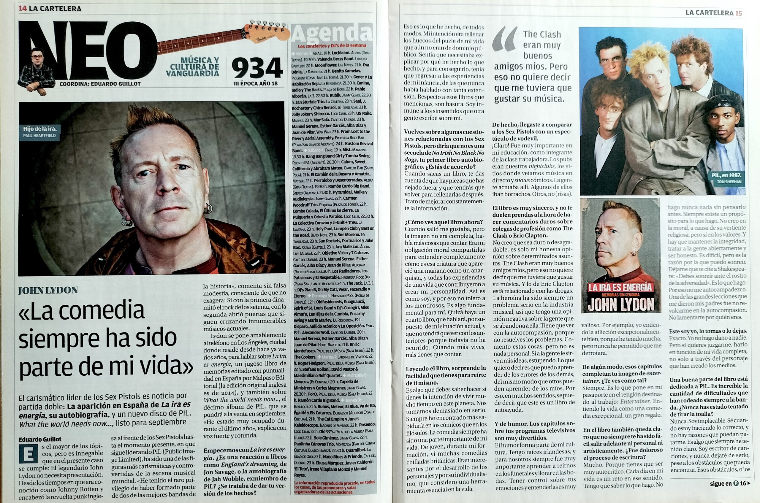 Es el mayor de los tópicos, pero es innegable que en el presente caso se cumple: el legendario John Lydon no necesita presentación. Desde los tiempos en que era conocido como Johnny Rotten y encabezó la revuelta punk inglesa al frente de los Sex Pistols hasta el momento presente, en que sigue liderando PiL (Public Image Limited), ha sido una de las figuras más carismáticas y controvertidas de la escena musical mundial. «He tenido el raro privilegio de haber formado parte de dos de las mejores bandas de la historia», comenta sin falsa modestia, consciente de que no exagera: si con la primera dinamitó el rock de los setenta, con la segunda abrió puertas que siguen cruzando innumerables músicos actuales. Lydon se pone amablemente al teléfono en Los Ángeles, ciudad donde reside desde hace ya varios años, para hablar sobre La ira es energía, un jugoso libro de memorias editado con puntualidad en España por Malpaso Editorial (la versión original inglesa es de 2014), y también sobre What the world needs now…, el décimo álbum de PiL, que se pondrá a la venta en septiembre. «He estado muy ocupado durante el último año», explica con voz fuerte y rotunda.